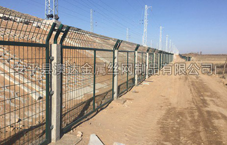 铁路防护栅栏主要分镀锌防护栅栏、浸塑防护栅栏俩大种类,是以立柱加网片连接而成。